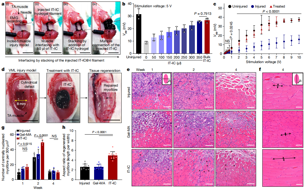 软性电活性水凝胶具有生理力学模量小、电阻低、对生物组织电生理信号具有双向刺激和记录能力等优点,是构建组织样假体材料的最佳选择。然而,到目前为止,用于这种假体的生物电子装置一直是补片式的,不能应用于粗糙、狭窄或深层组织表面。在这里,我们提出了一个注射组织假体与瞬间双向电传导性在神经肌肉系统。该软性注射假体由具有苯硼酸盐介导的多重交联的生物相容性水凝胶组成,如不可逆但可自由重排的联苯键和可逆的配位键与...