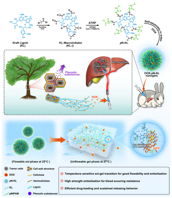 Biomaterials: 木结构启发的可注射木质素纳米凝胶作为血管栓塞持续药物释放支架用于肝癌介入治疗
