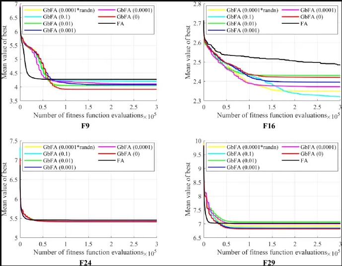 Fig. W2 The convergence characteristics of the FA algorithms for some test functions.
